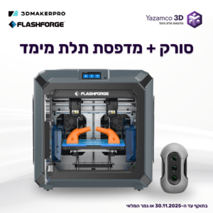 באנדל פופולרי במיוחד לרכישה- פתרון אחד מלא לעסק שלכם – מדפסת תלת מימד וסורק מקצועי שישדרגו את הייצור שלכם מקצה לקצה!