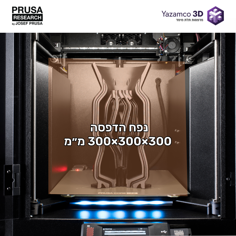ה־Core One L מציעה נפח הדפסה מרשים של 300×300×330 מ"מ. נפח גדול שמאפשר הדפסה של פרויקטים תעשייתיים, מודלים הנדסיים וחלקים פונקציונליים בגדלים משמעותיים.