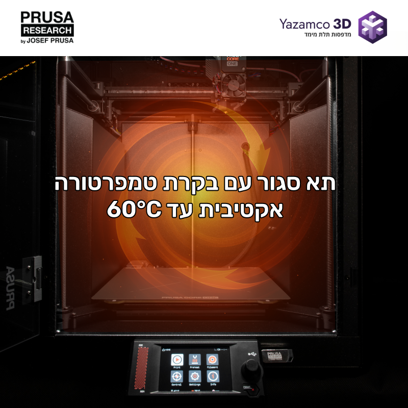 מדפסת תלת מימד מהדור החדש של Prusa, המיועדת לסביבת עבודה מקצועית ותעשייתית.