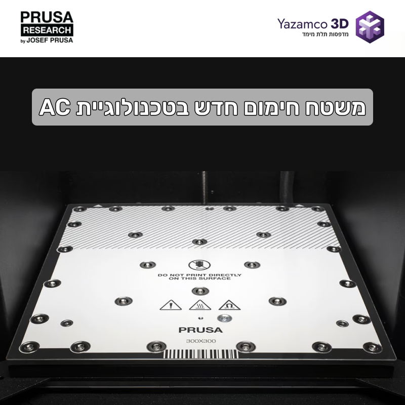 משטח החימום AC מפזר את החום בצורה אחידה לכל רוחב המיטה, שומר על טמפרטורה יציבה ומבטיח תוצאה חלקה גם בהדפסות גדולות.