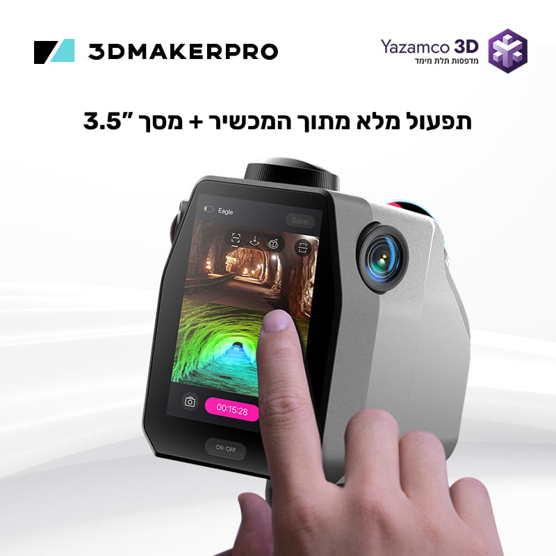 Eagle מבית 3DMakerpro הוא סורק מרחבי (Spatial Scanner) בעל ביצועים גבוהים, המשלב דיוק גבוה, כיסוי רחב ותפעול נוח. הוא נועד לאנשי מקצוע הזקוקים ליעילות ולמודלים גדולים בזמן קצר החל מסקרים אדריכליים ועד הפקה קולנועית ותערוכות וירטואליות. Eagle מספק פתרון מקצה־לקצה: איסוף נתונים, עיבוד ויצירת מודלים תלת־ממדיים כולם במסגרת מערכת אחת.